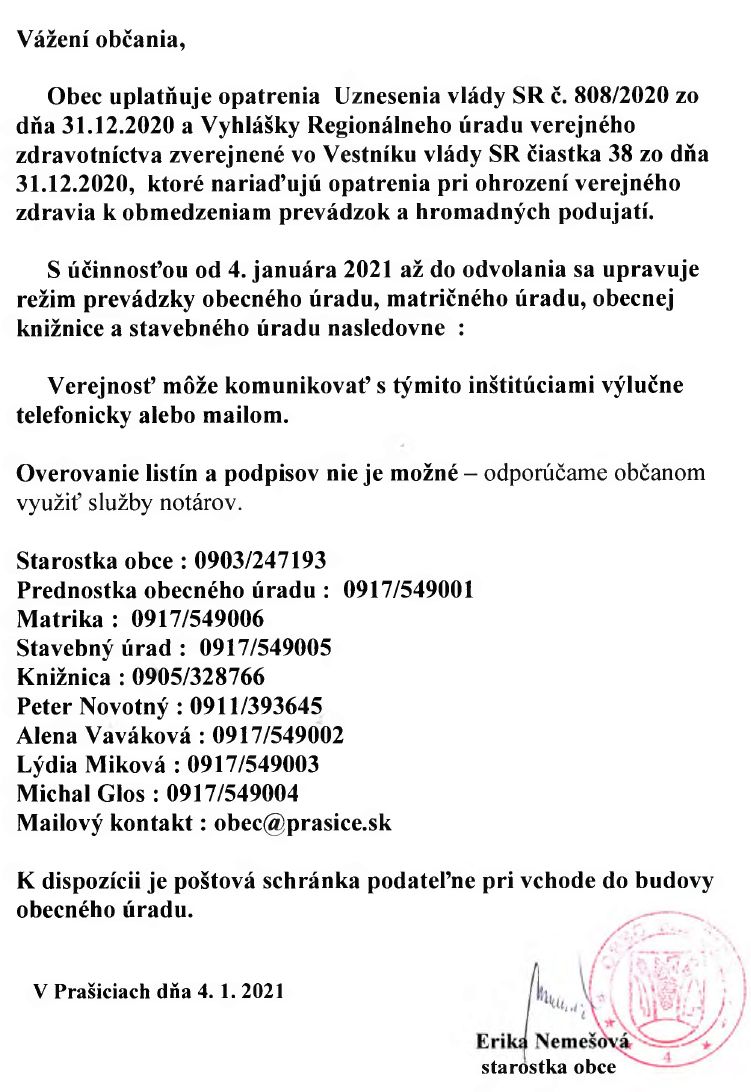 Zmena prevádzky Obecného úradu v Prašiciach