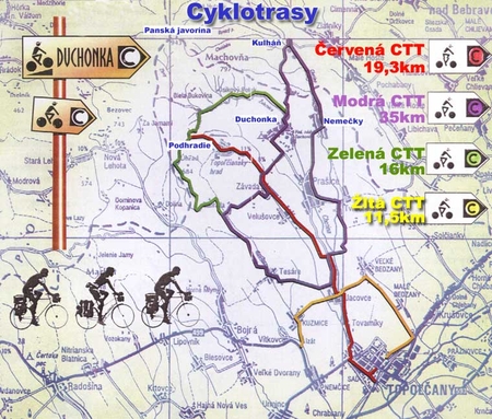 Celková dĺžka projektu cykloturistických trás je 82 km. Z toho asi 1/3 vedie účelovými spevnenými komunikáciami štátnych lesov v obvode Lesných správ Kulháň, Bojná a Topoľčany. Menšia časť vedie po účelových komunikáciách PD a zvyšok po štátnych cestách III. triedy. Cyklotrasy prechádzajú územím katastrov obcí Tovarníky, Jacovce, Tesáre, Kuzmice, Velušovce, Závada, Podhradie, Prašice, Tvrdomestice, Nemečky, Zlatníky a mestom Topoľčany.